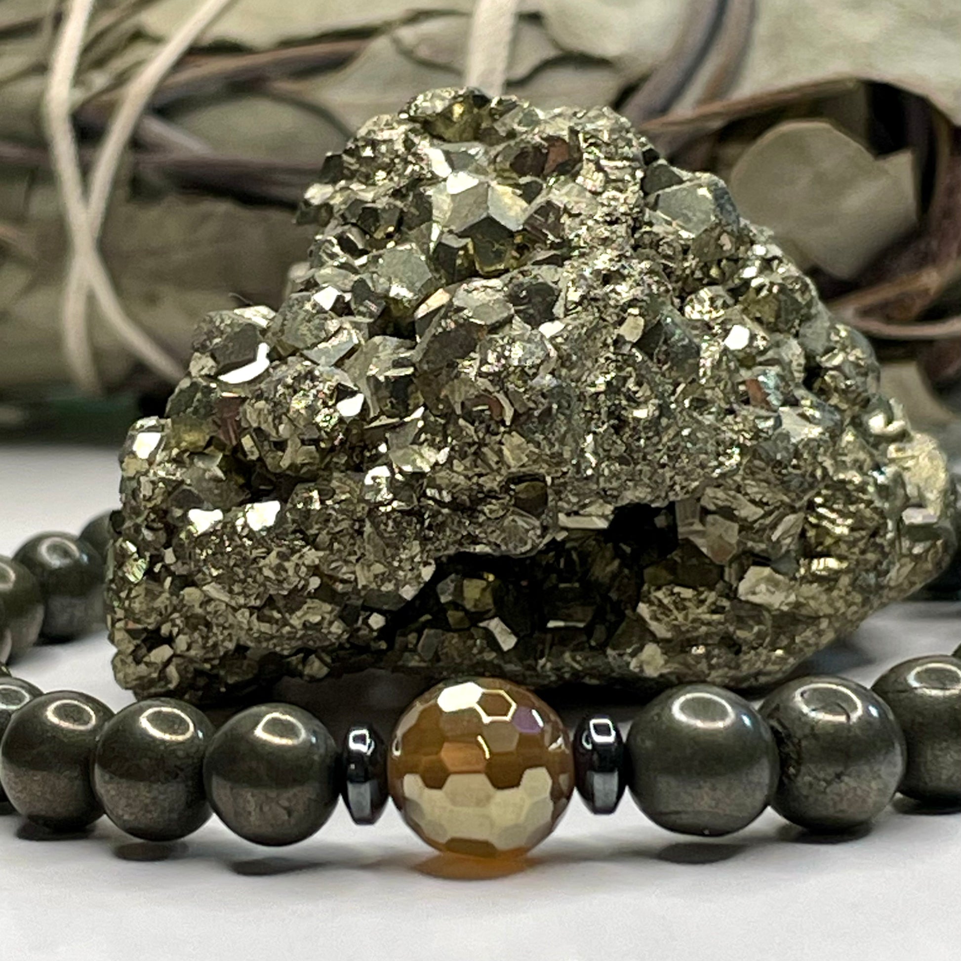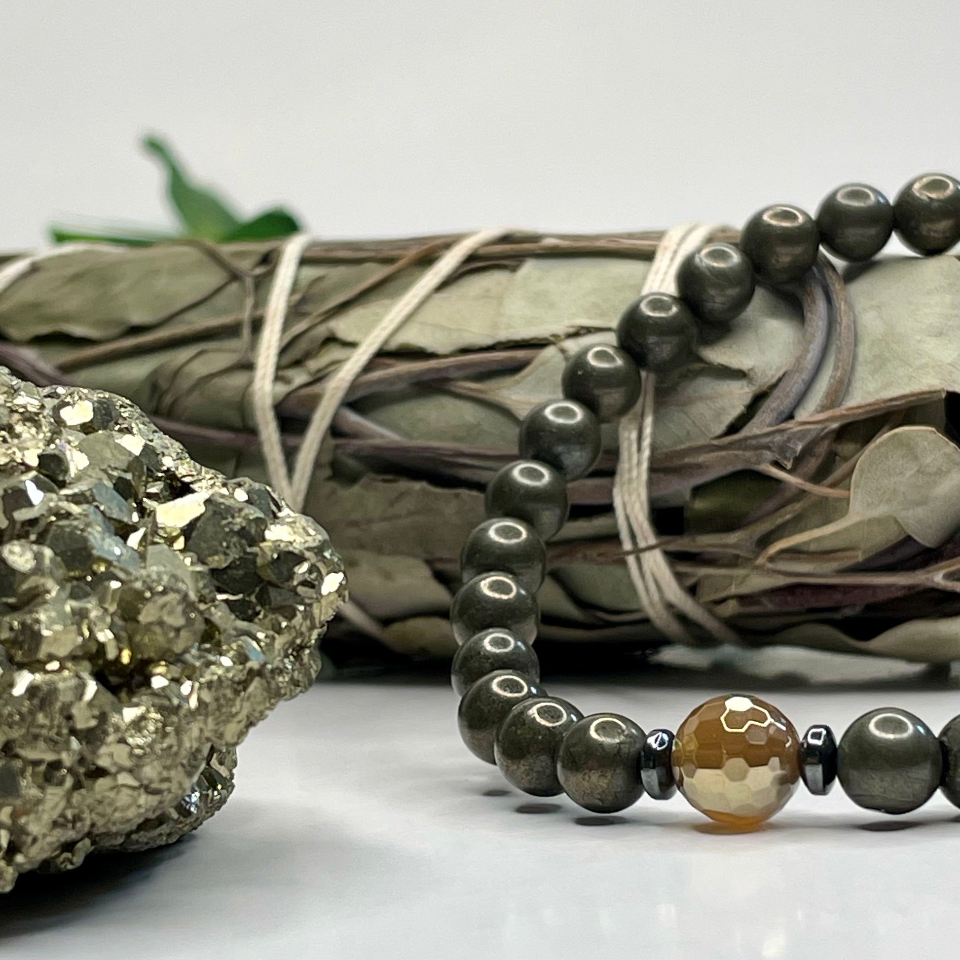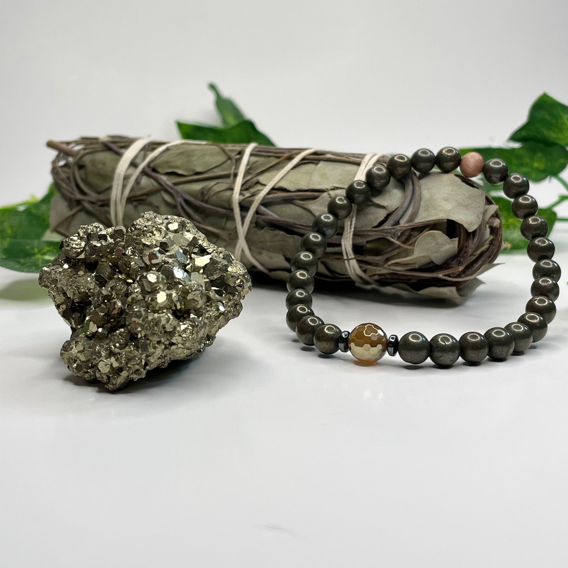 Step into clarity, strength, and emotional resilience with the empowering energies of Pyrite and Coffee Agate. Reiki-infused to amplify their stabilizing and nurturing properties, this bracelet is perfect for those seeking balance, focus, and a renewed sense of purpose.