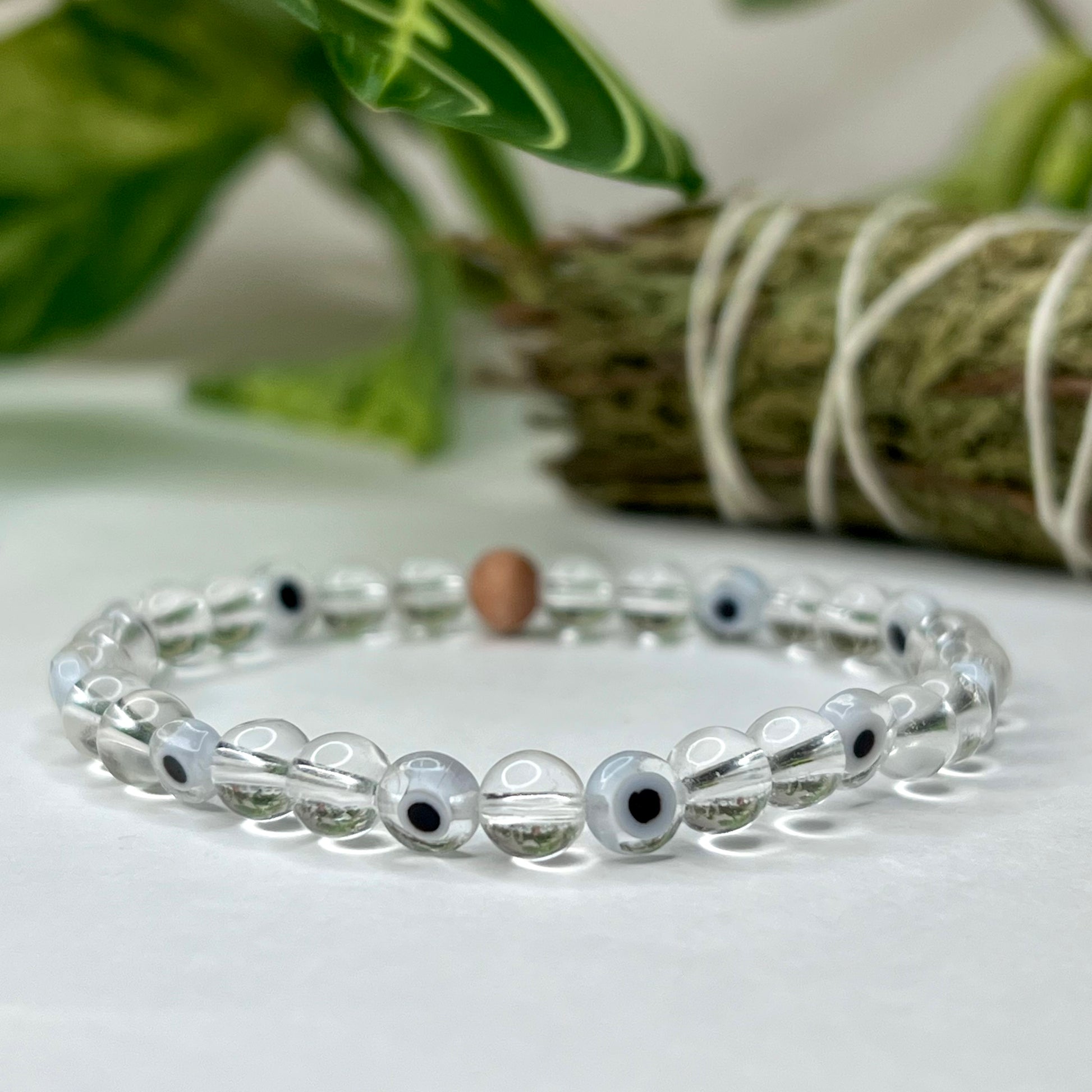 White Evil Eye - Acts as a radiant beacon of purity and protection, reflecting positive intentions and warding off negativity. Together, they create a shield that keeps your energy bright, joyful, and free from unwanted influences.