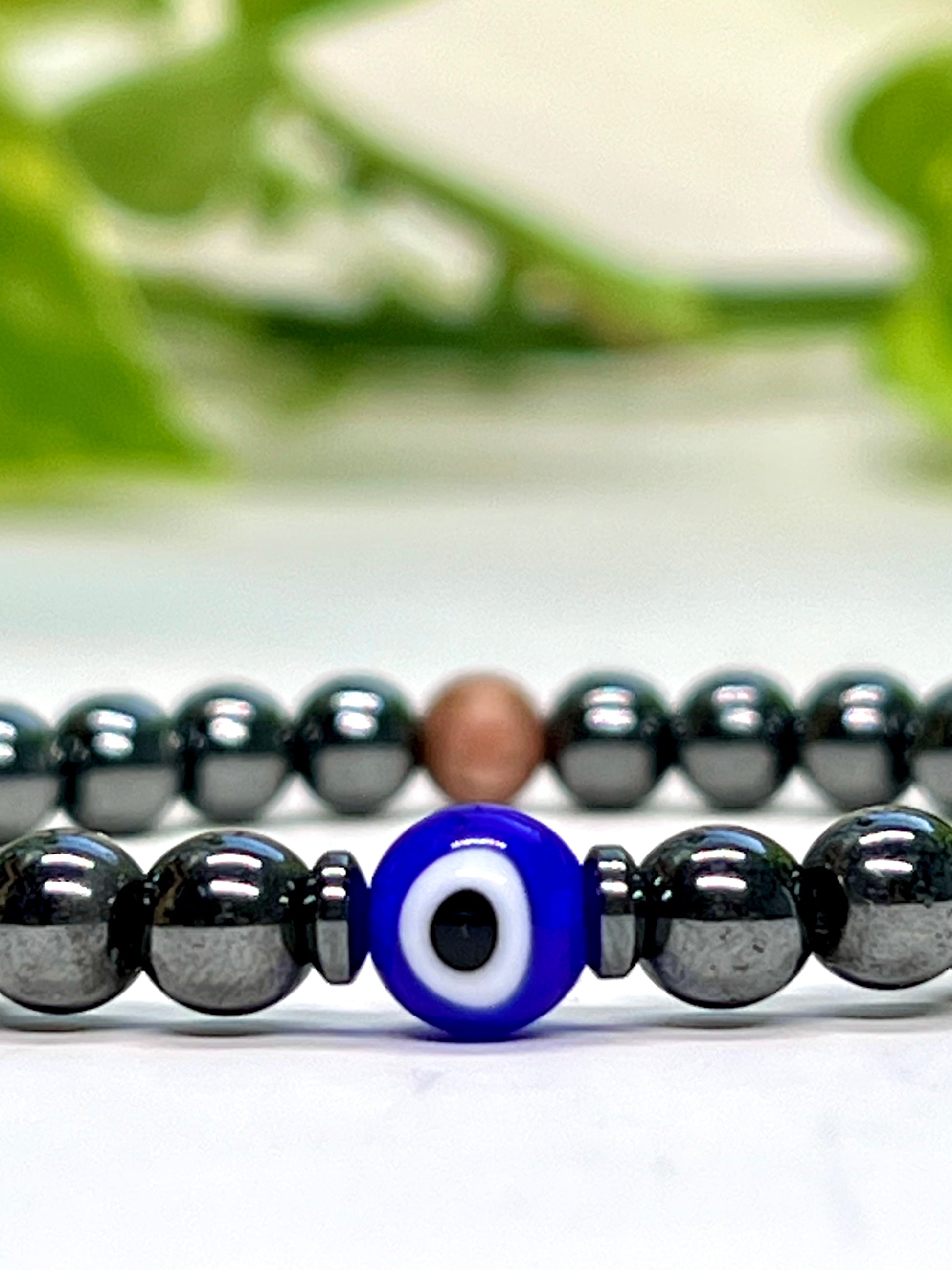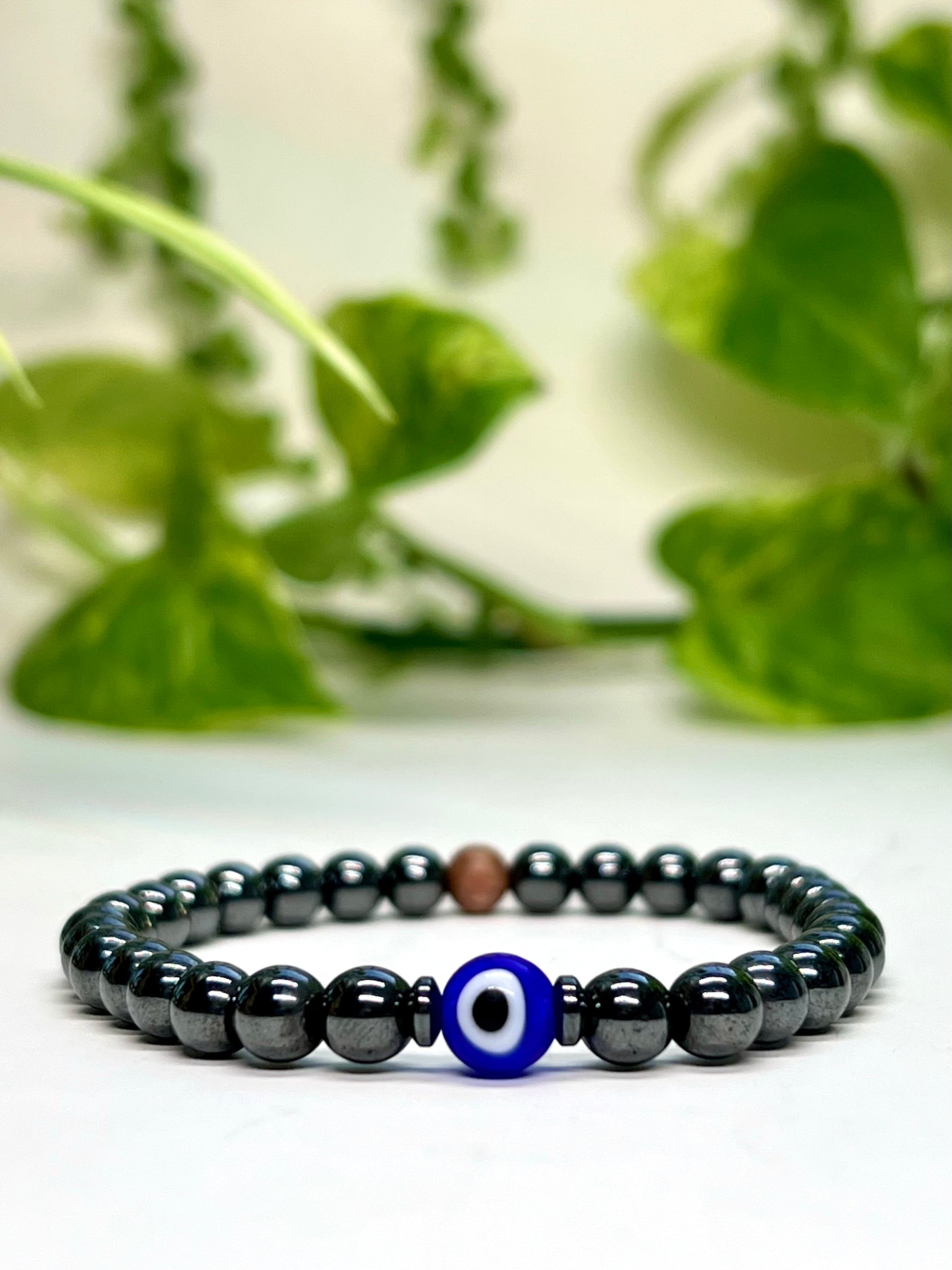Ground yourself with the powerful protection and grounding energy of Hematite, beautifully paired with the iconic Evil Eye for added spiritual defense. Hematite is known as the stone of courage and clarity, helping to absorb negative energy and enhance focus. The Evil Eye pendant acts as a shield against harmful intentions and energy, keeping your aura safe and balanced. Complemented by the warm, natural touch of Rosewood, this bracelet is your daily armor for confidence, emotional stability, and protection.