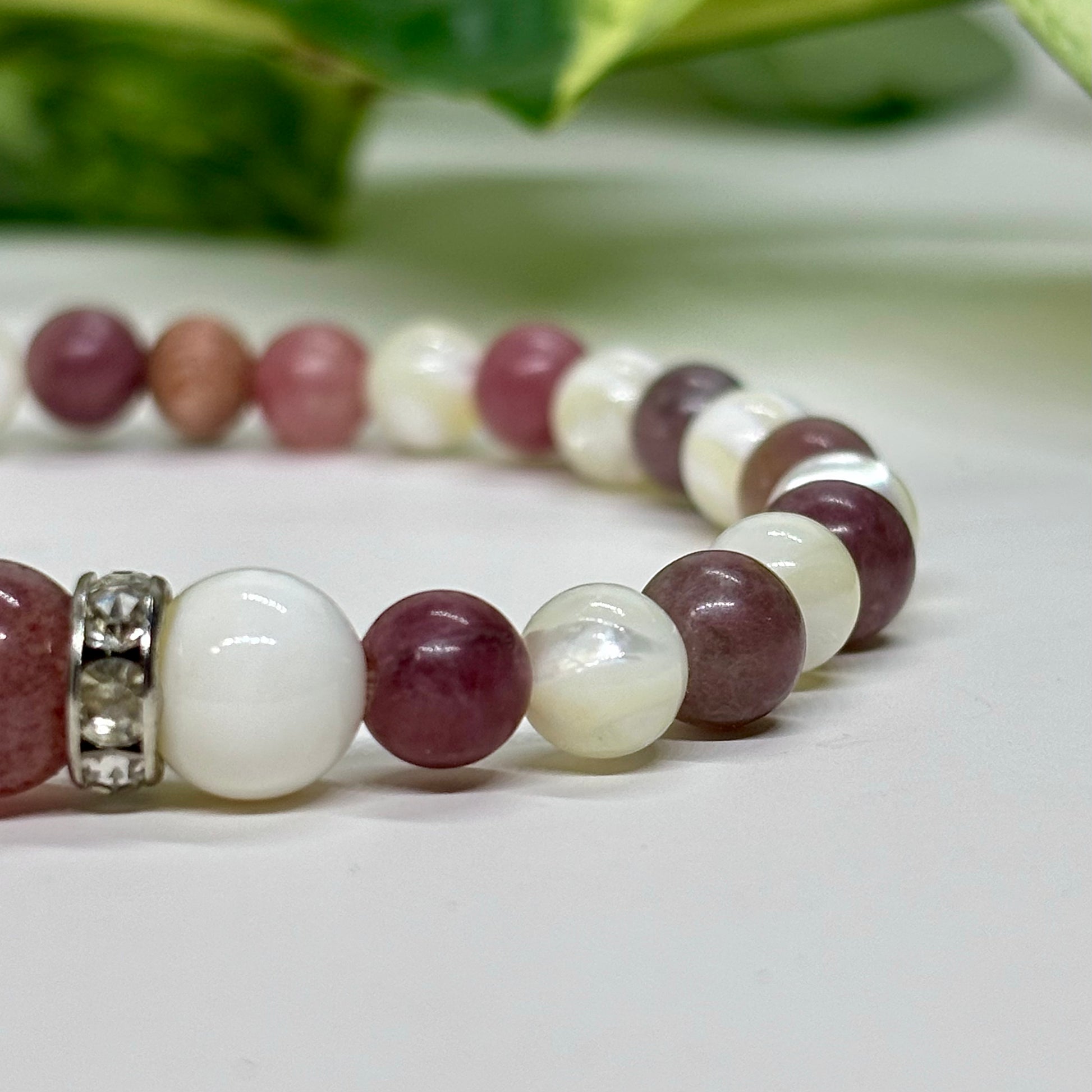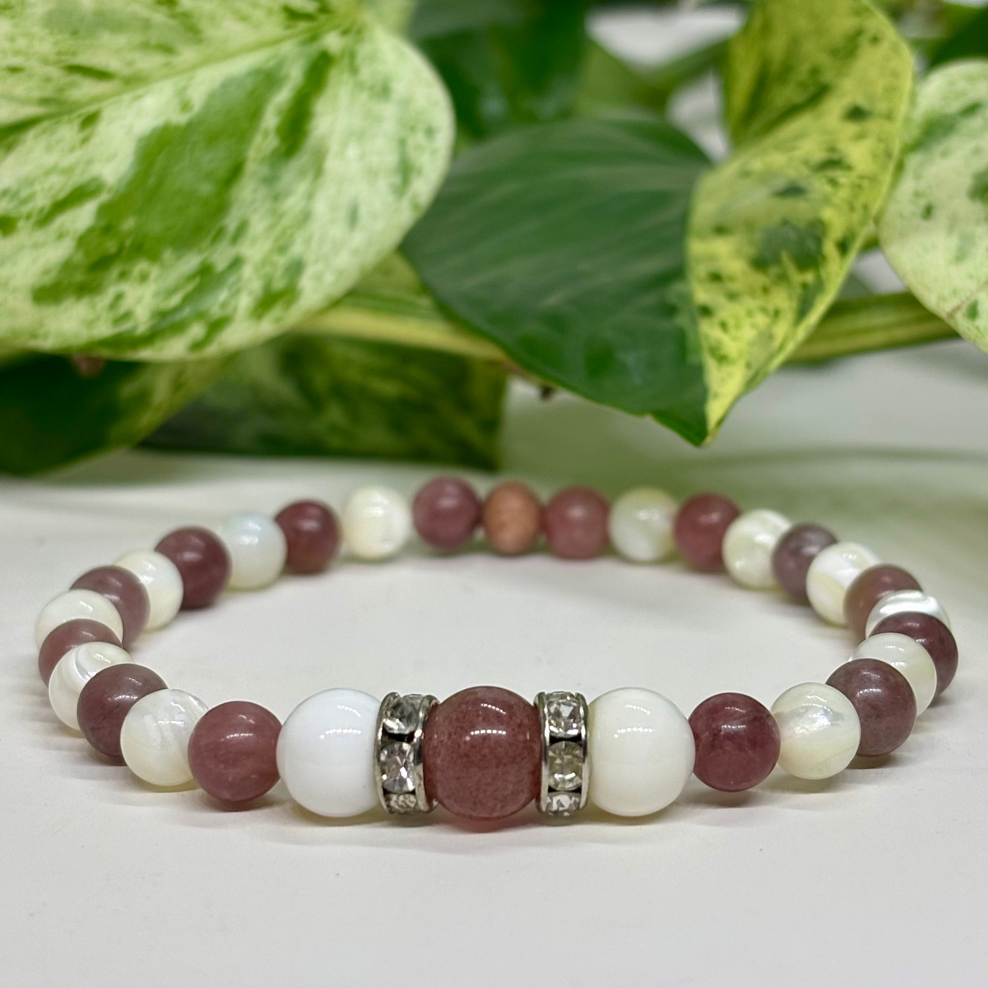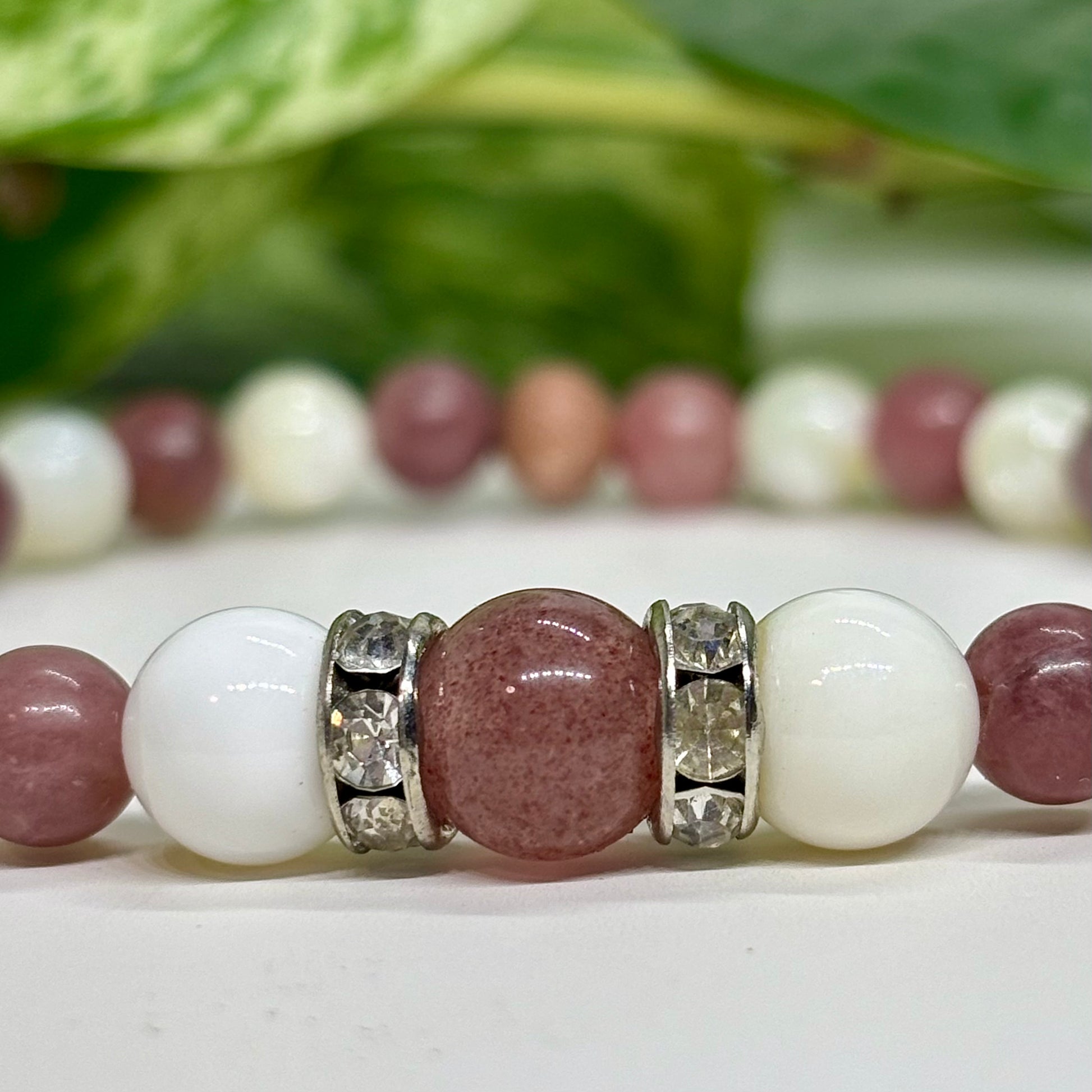 Experience a soothing blend of emotional healing and spiritual protection with the calming energies of Berry Quartz and Tridacna Shell. This bracelet is designed to stabilize your mood, balance your mind, and inspire joy, passion, and inner calm.