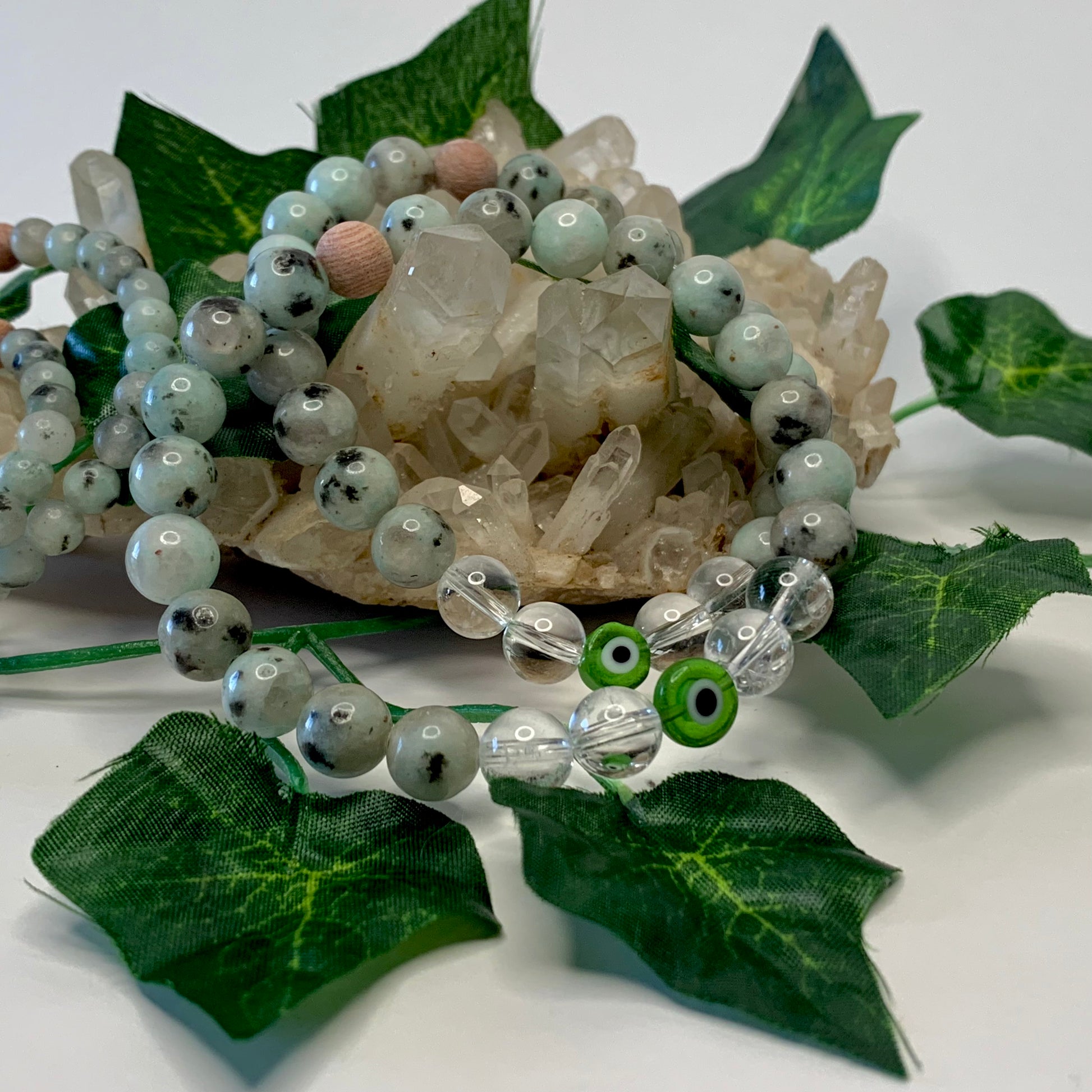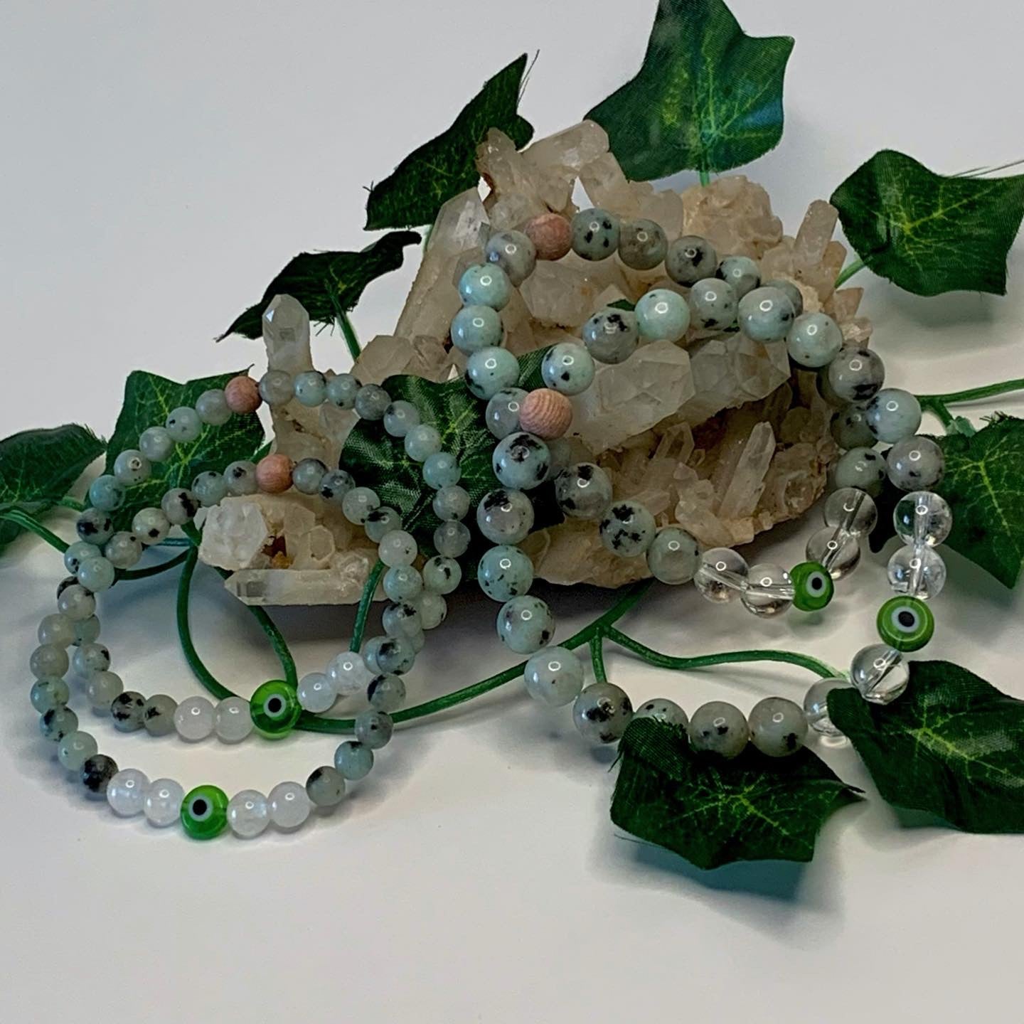 💚 Kiwi Jasper gently clears away energetic blockages and rebalances your aura. It’s a deeply tranquil crystal with an uplifting side, bringing calm to your heart and optimism to your spirit.