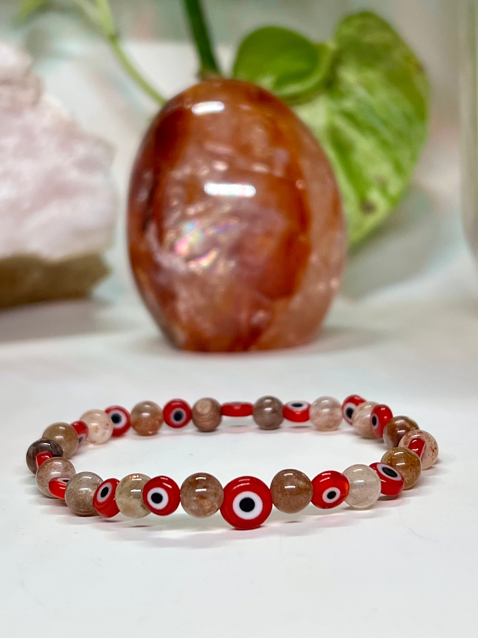 Experience powerful emotional healing and protection with this striking bracelet featuring Lithium Quartz and Red Evil Eye beads, balanced with grounding Rosewood. Lithium Quartz is celebrated for its ability to soothe anxiety, promote emotional balance, and uplift the spirit, helping you find calm in the storm. The Red Evil Eye serves as a potent talisman against negativity, shielding your energy and drawing in confidence and courage. Together, they create a harmonious blend of peace, strength, and fearless protection, a perfect companion for anyone seeking emotional clarity and powerful energetic defence.