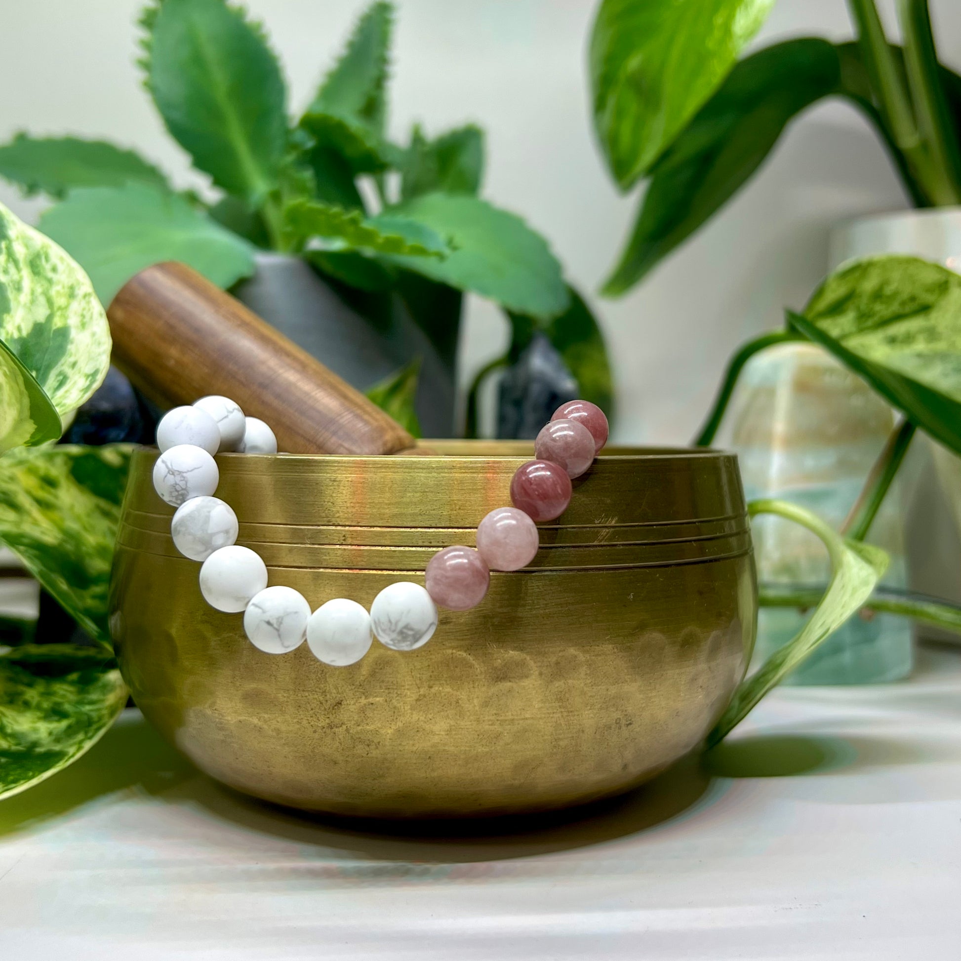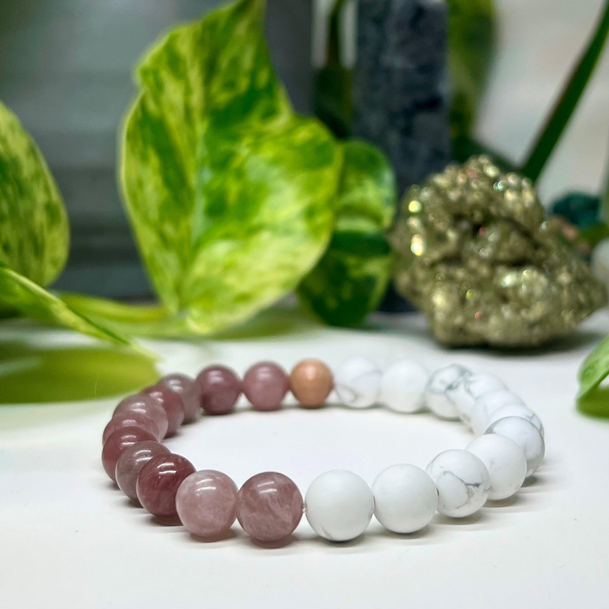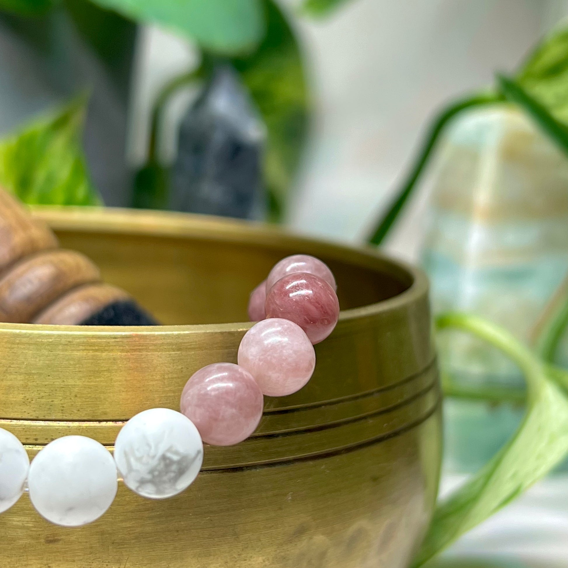 Soft, soothing, and energetically uplifting, this bracelet is designed to bring peace to the mind and nourishment to the heart. A gentle yet powerful combination of Howlite, Berry Quartz, and Rosewood supports emotional healing, spiritual growth, and deeper self-awareness.
