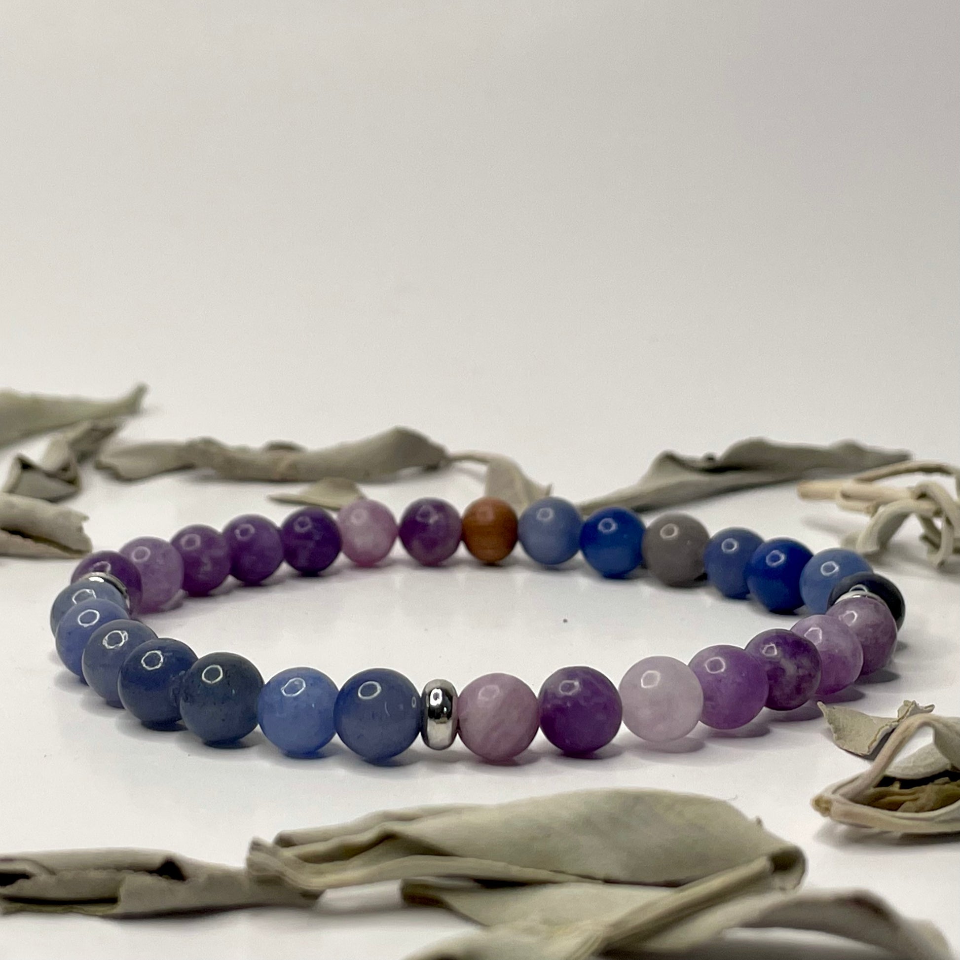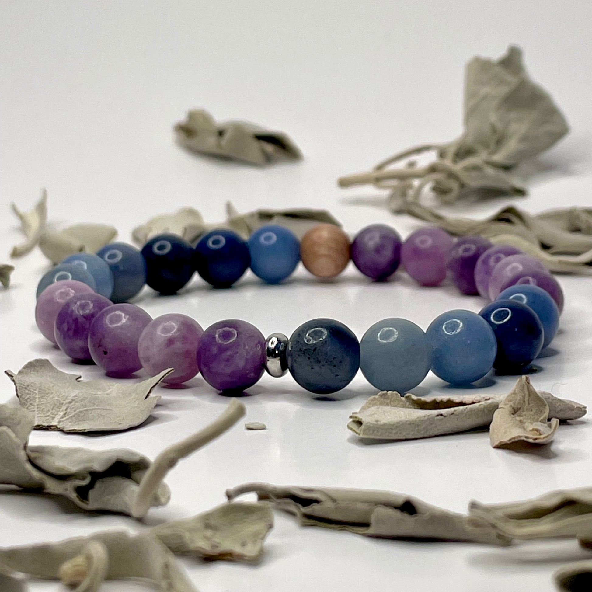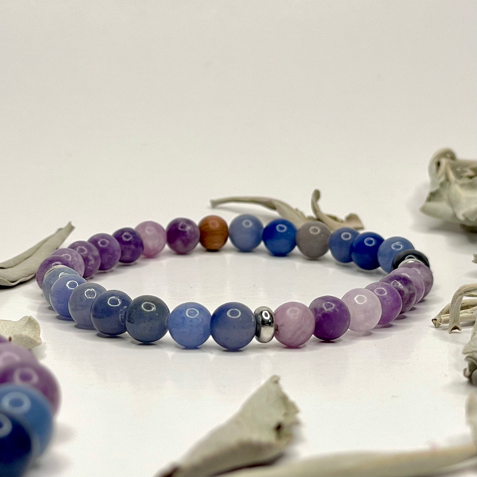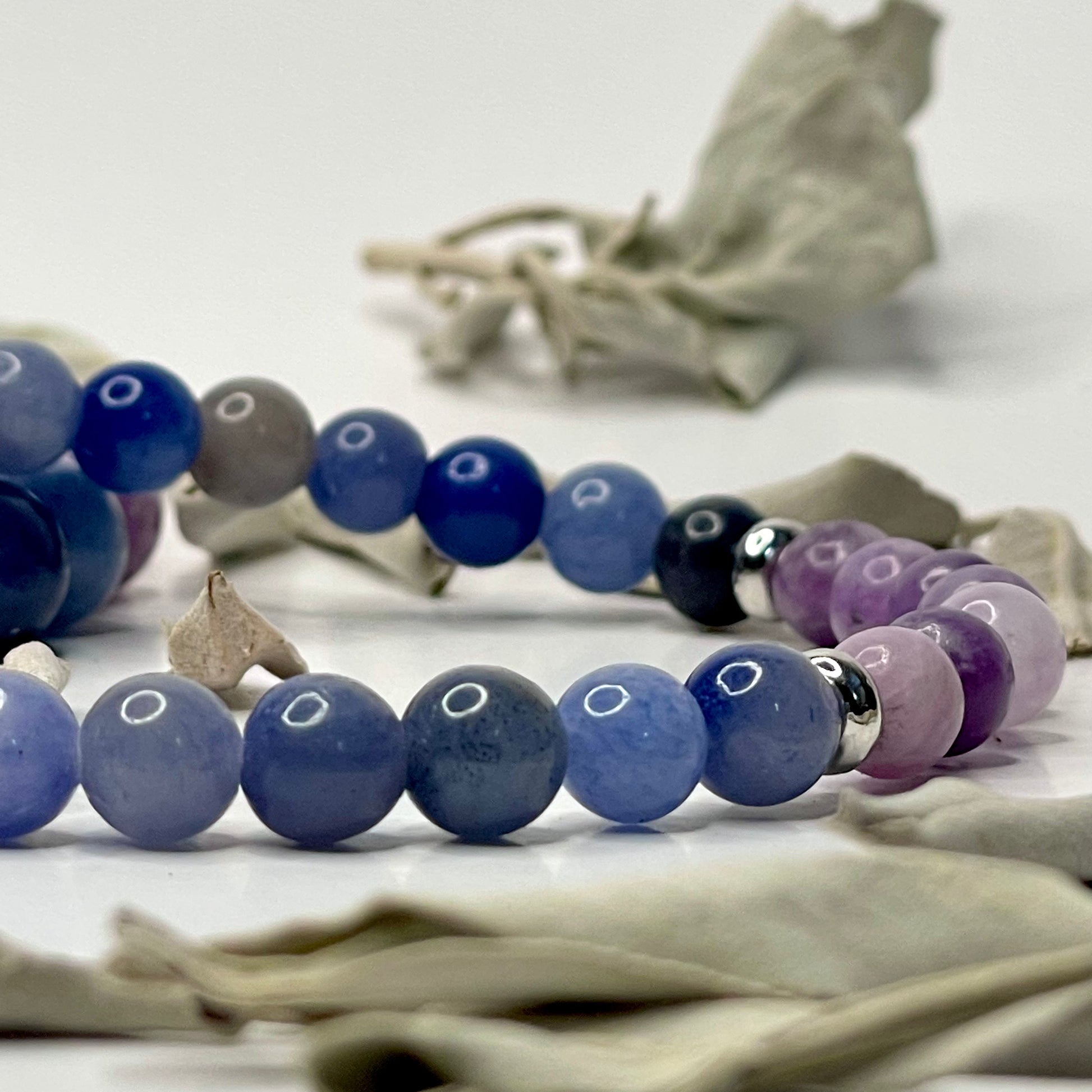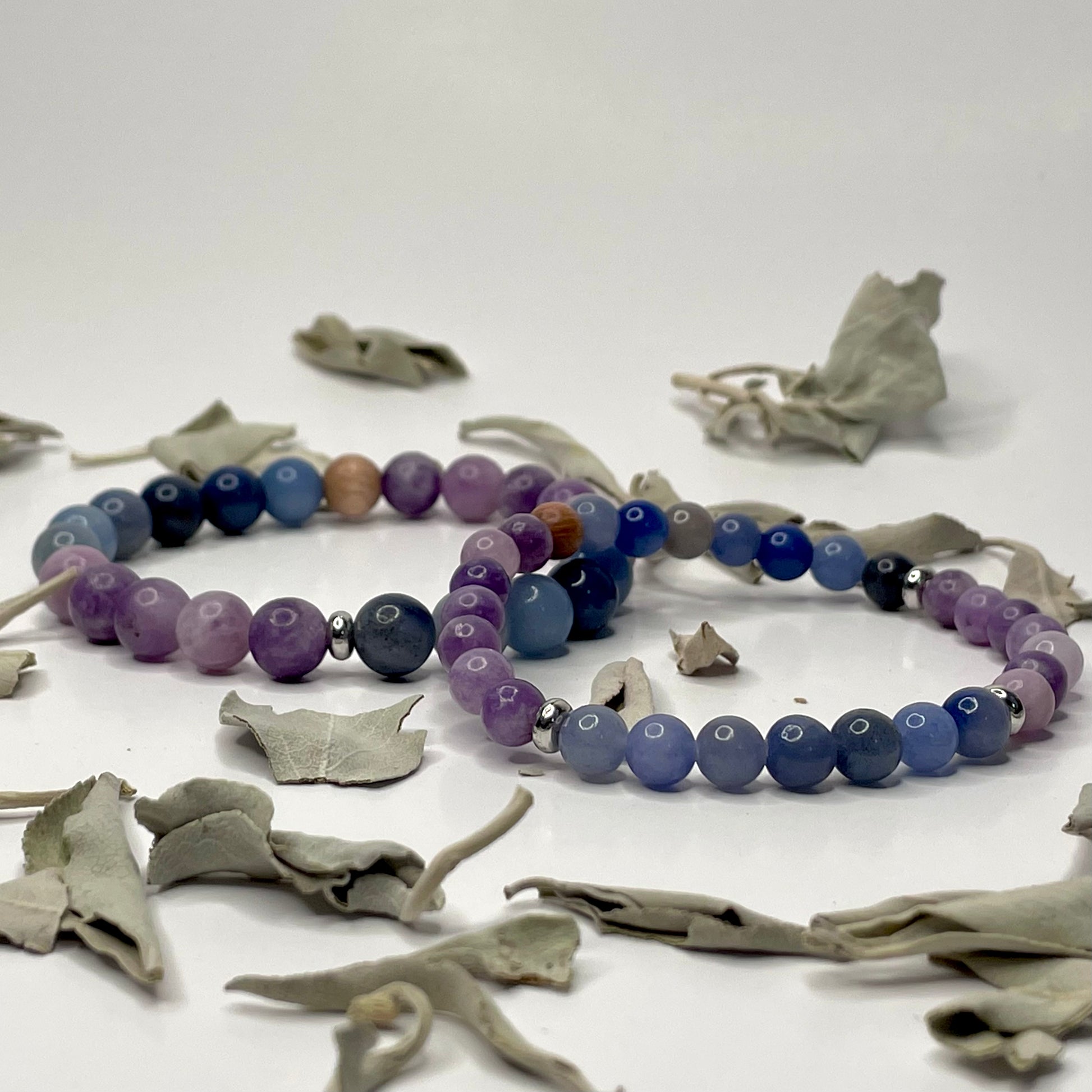Lepidolite and Blue Aventurine team up to bring you peace, emotional relief, and inner growth.